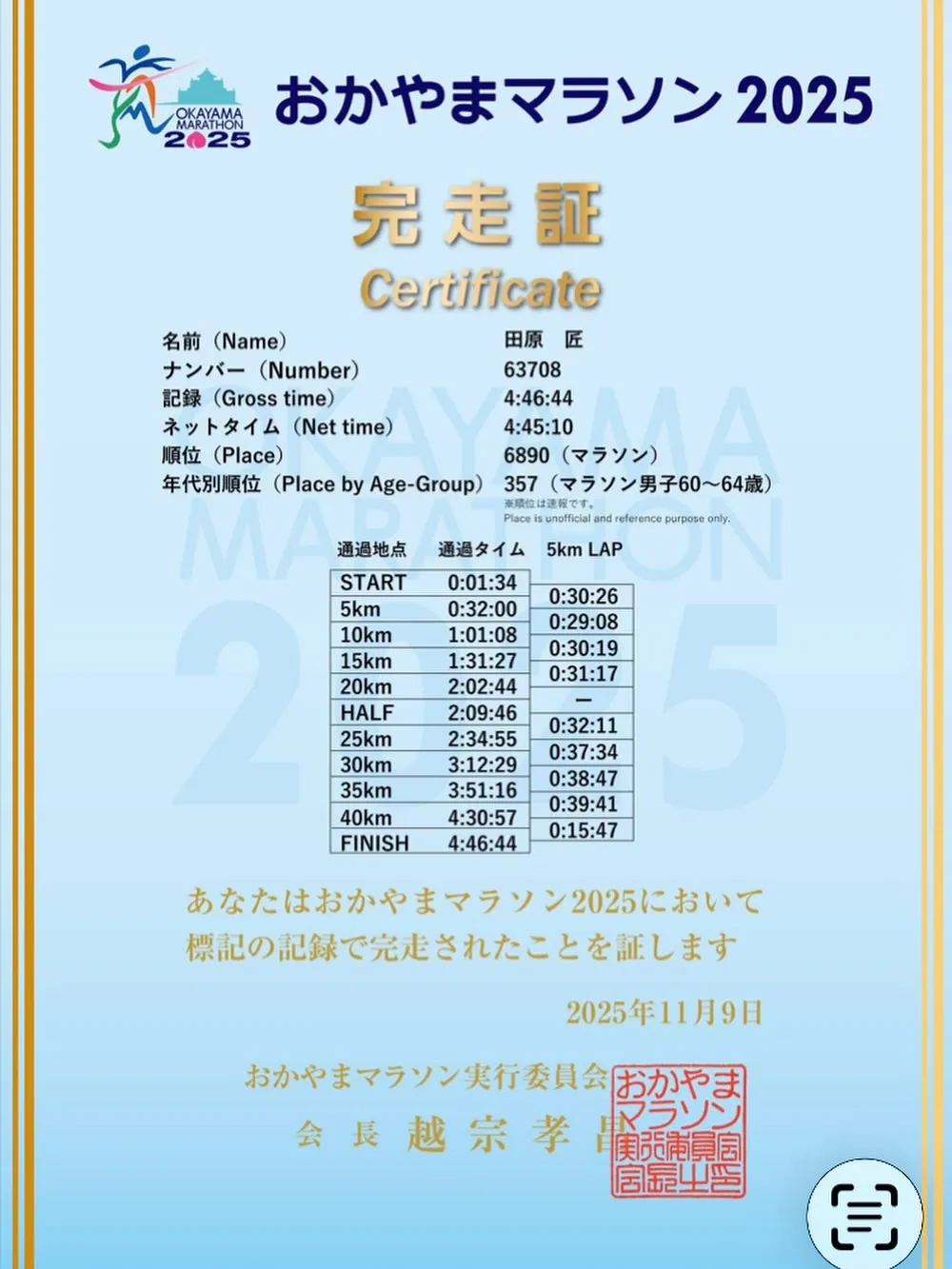 #おかやまマラソン #完走 #ゴールしたら雨止んだ #練習不足 #お好み焼一休 #一休焼 #クラウドファンディング挑戦中