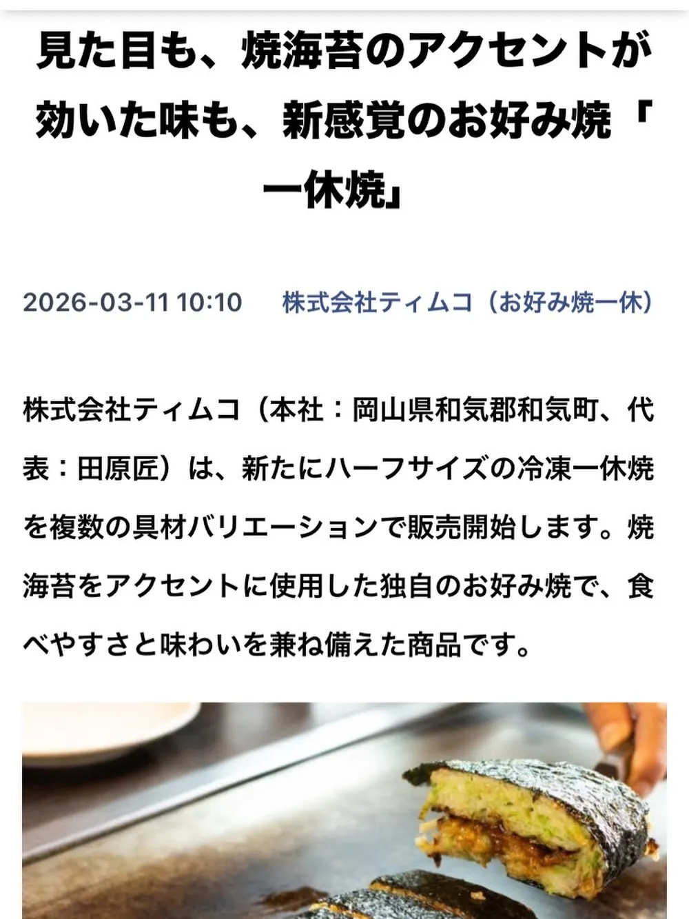 NEWSCASTにて、取り上げていただいております。 2026/04/16 NEWSCASTにて、取り上げていただいております。 https://newscast.jp/smart/news/1451796 引き続き、マクアケにて、先行予約販売受付中です。 #マクアケ #一休焼 #先行予約販売